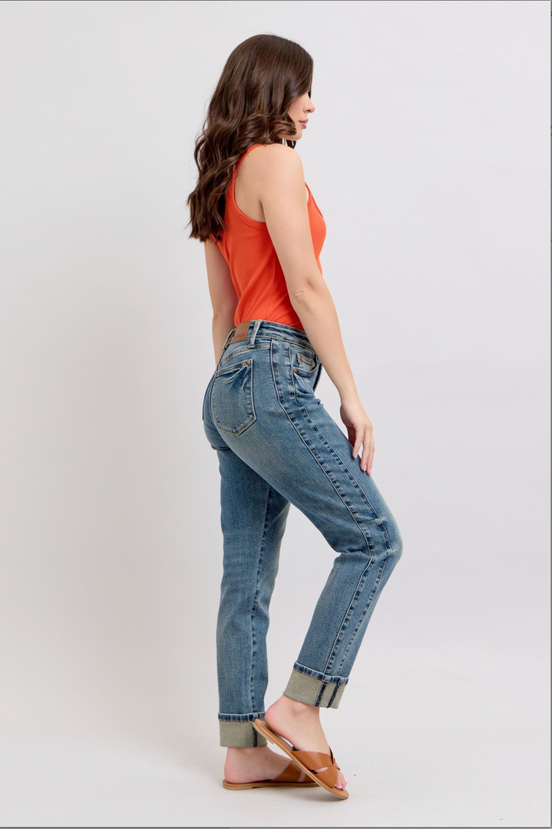 Introducing our Judy Blue Mid Rise Vintage Wash Boyfriend Jeans, the perfect blend of comfort and style!